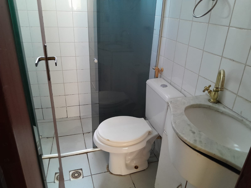 Banho social com box em blindex e armários
