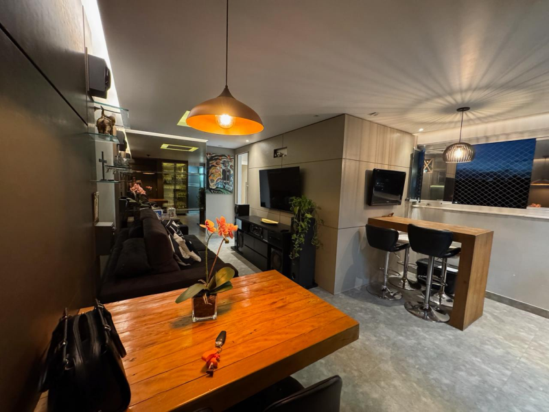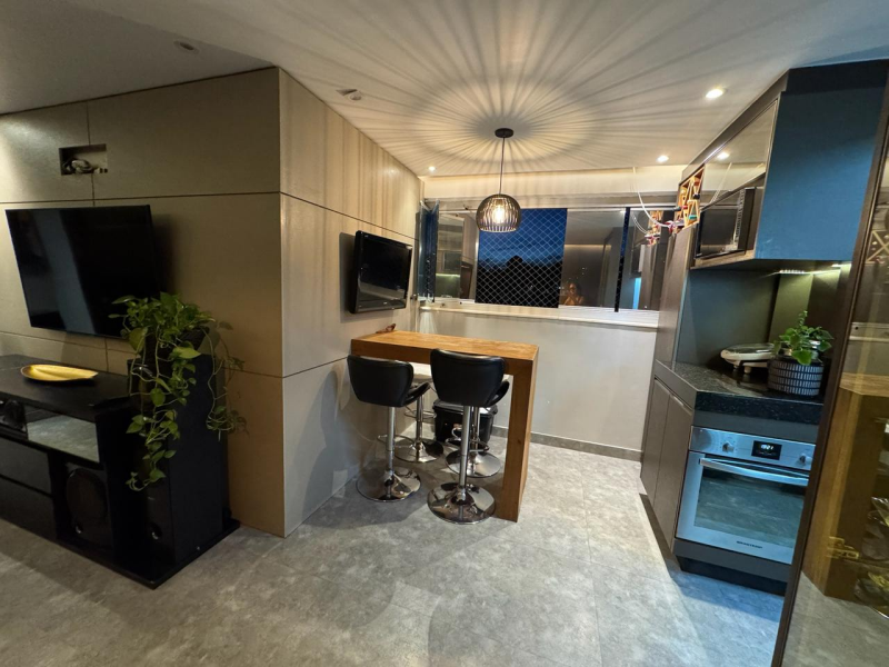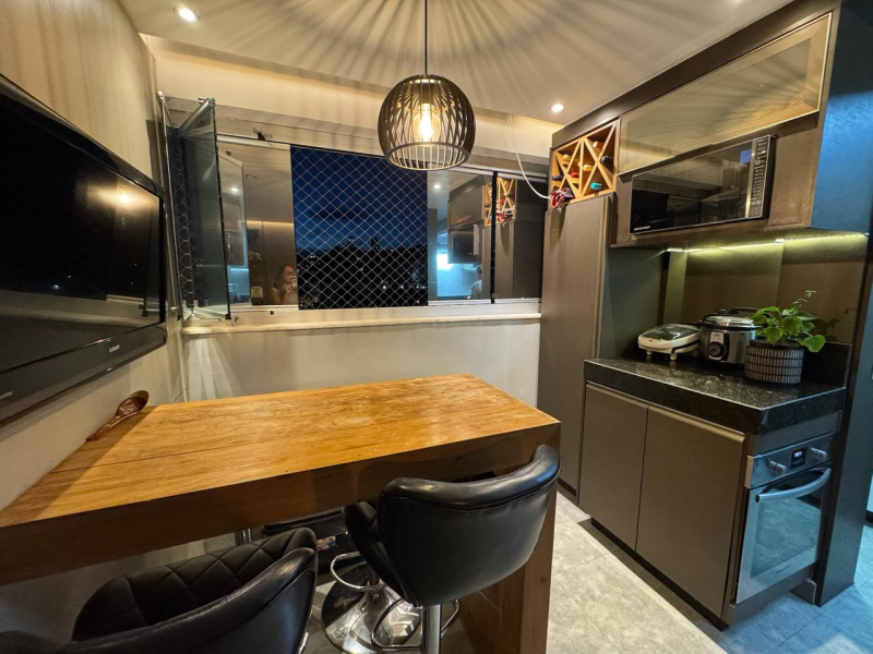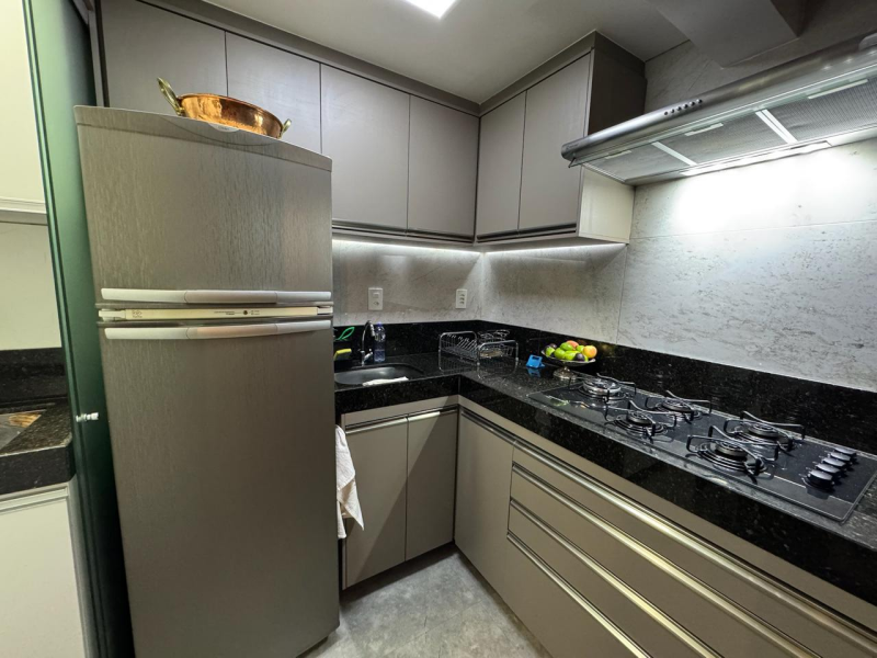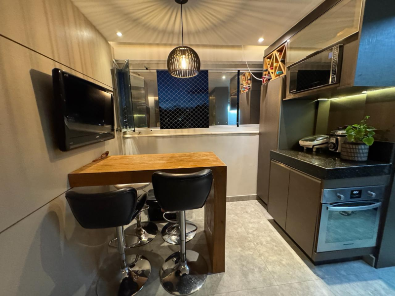 O imóvel possui 3 quartos, sendo 1 suíte, todos bem distribuídos e equipados. Conta com sala ampla para dois ambientes, proporcionando um espaço confortável e versátil para convivência. A cozinha é equipada com armários planejados, oferecendo funcionalidade e organização.