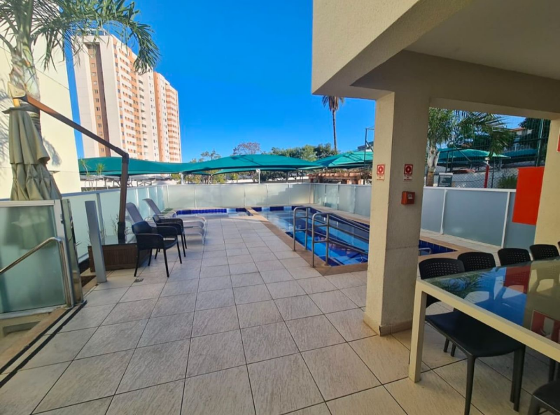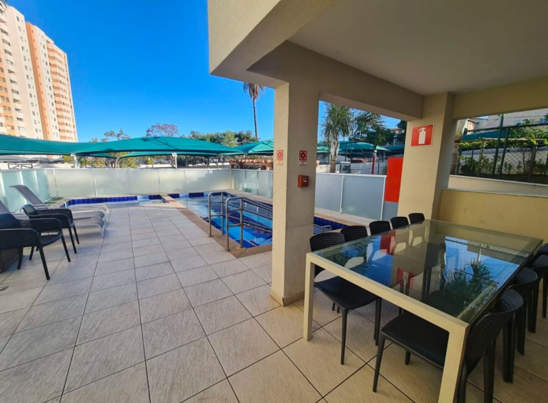 O condomínio possui área de lazer completa, ideal para momentos de descanso e diversão com a família.