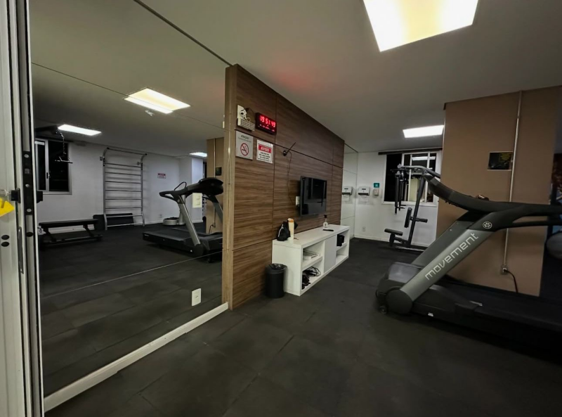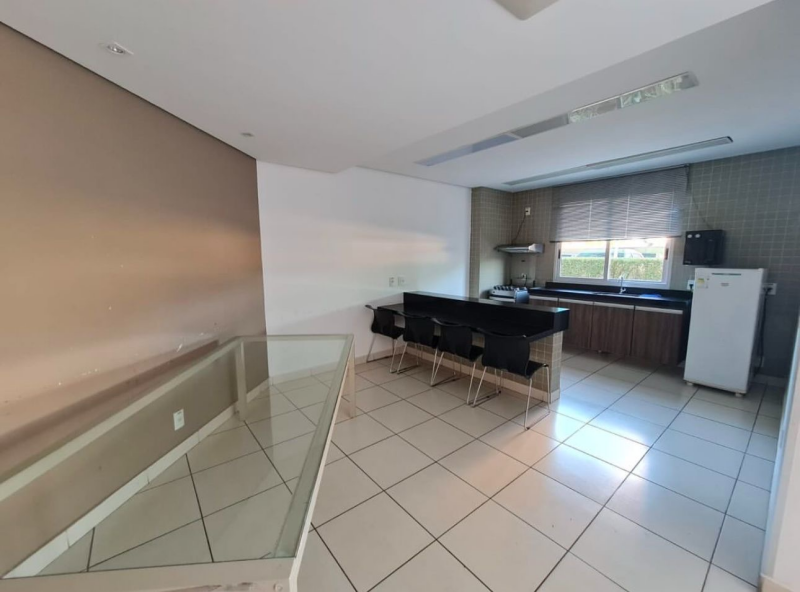A cozinha conta com armários planejados, oferecendo mais organização e funcionalidade no dia a dia. O apartamento também dispõe de banheiro social e ambientes bem distribuídos.