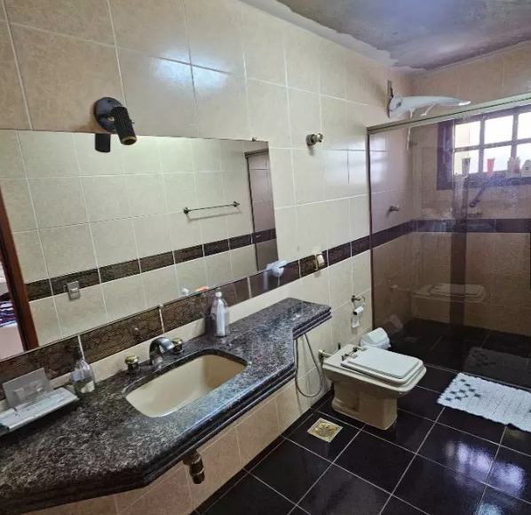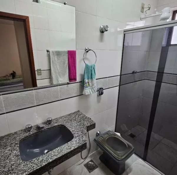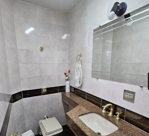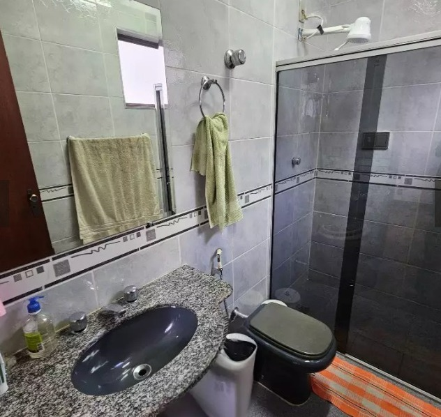 Banho social com box em blindex e espelho