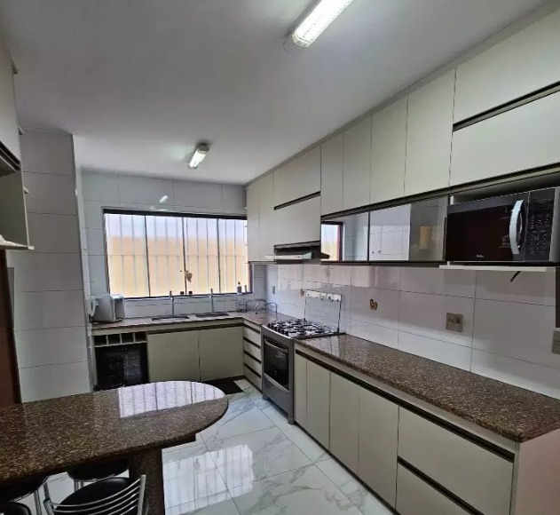 Cozinha ampla com bancadas em granito e armários planejados