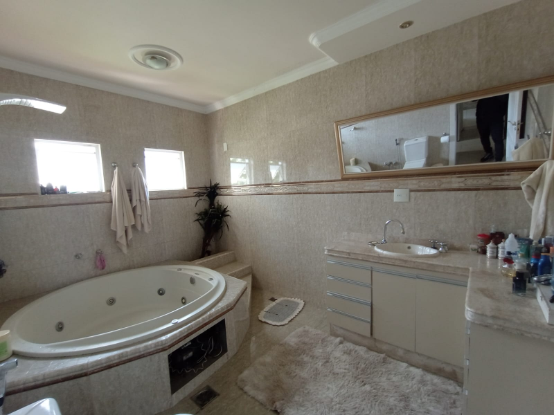 A casa possui 4 quartos bem distribuídos. Cada quarto é equipado com armários embutidos, sendo um deles com suíte contendo banheira de hidromassagem. Os quartos são bem iluminados e arejados, com janelas que permitem a entrada de luz natural durante o dia.