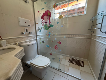 Casa com 3 quartos, sendo 1 suíte, sala ampla, cozinha com armários, banheiro social e área de serviço.