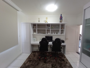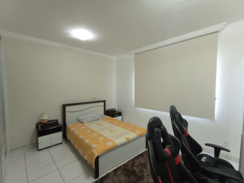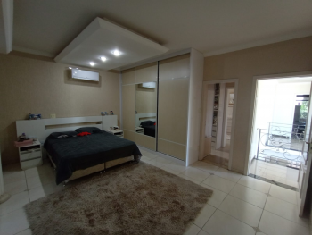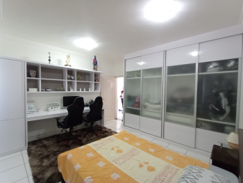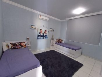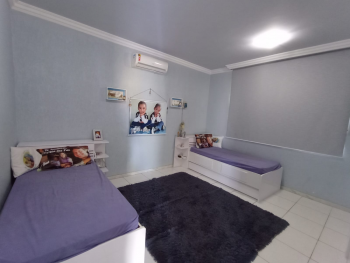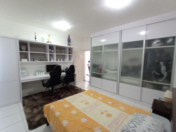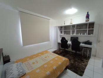 A casa possui 4 quartos bem distribuídos. Cada quarto é equipado com armários embutidos, sendo um deles com suíte contendo banheira de hidromassagem. Os quartos são bem iluminados e arejados, com janelas que permitem a entrada de luz natural durante o dia.