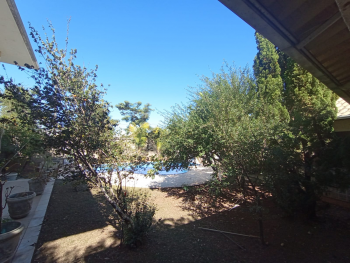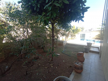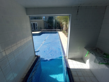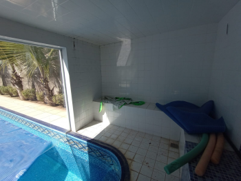 Ao sair da área interna, você será recebido por um belo espaço externo. O jardim bem cuidado oferece um ambiente agradável e tranquilo. No centro, há uma piscina convidativa, perfeita para se refrescar nos dias quentes ou desfrutar de momentos de lazer. Ao lado da piscina, encontra-se a sauna, que proporciona relaxamento e bem-estar.
